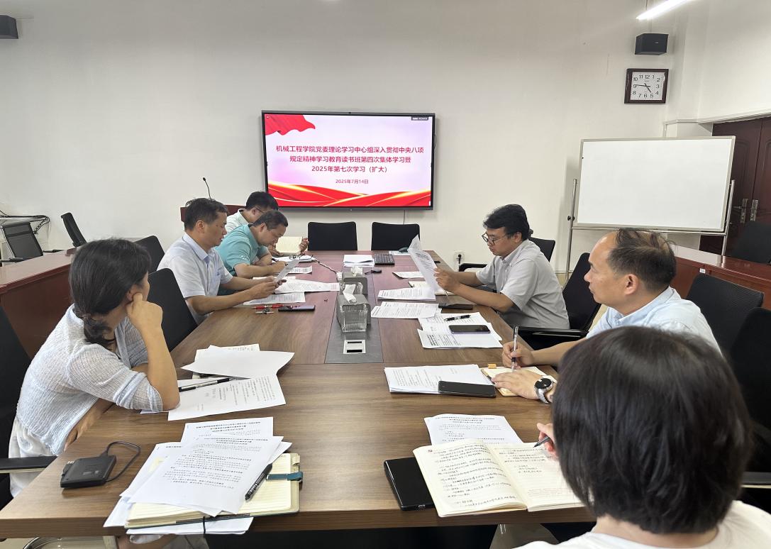 7月14日下午,我院深入贯彻中央八项规定精神学习教育读书班第四次集体学习暨2025年院党委理论学习中心组第七次(扩大)学习在机械楼308会议室举行。院党委书记黄先威主持学习。院党委理论学习中心组成员、各党支部书记参加学习。