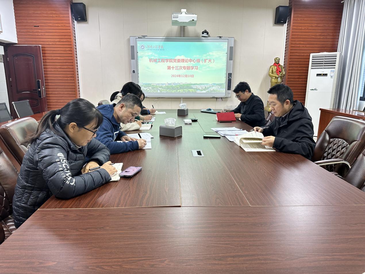 12月10日下午,学院党委理论学习中心组在机械楼311会议室开展2024年第十三次集中学习。学院党委书记陈国强主持学习。学院党委理论学习中心组成员、专职组织员线上线下参加学习。