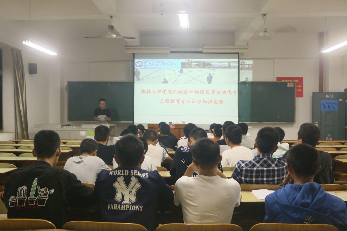 2016年10月21日晚,太阳成集团tyc33455cc在新校区主教学楼举办机械设计制造及其自动化工程教育专业认证认证知识竞赛。本次竞赛由机设专业全体学生参与,各班班主任及学生干部代表担任评委。
