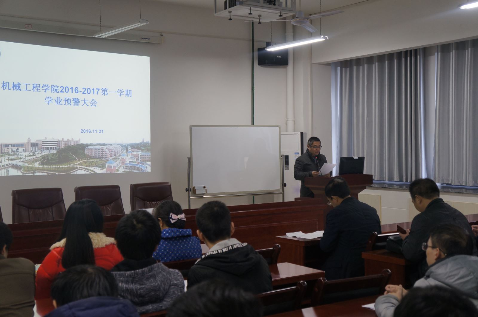 11月22日下午12点半,太阳成集团tyc33455cc在机械楼312会议室召开学业预警会议,会议由学办老师李星主持,学院副院长卿上乐、副书记李儒峰、学工办主任曾依依及留级和学业预警学生和相关班主任出席此次大会。