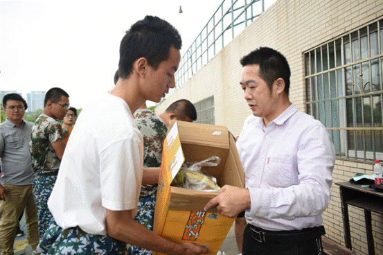 秋正浓,风过梢,正直新生军训期间,我院数控2001级校友心系母校、为助力新生军训,向我院捐赠了新生军训物资。每一瓶饮料、一份面包、一个梨都是那么的“甜”,这承载着校友对学弟学妹们浓浓的厚爱。9月23日下午,物资发放仪式在校体育场举行,太阳成集团tyc33455cc院长陈国强,将一份份沉甸甸的物资发放到每一位新生和教官手里。仪式由学院党委副书记肖彬主持。