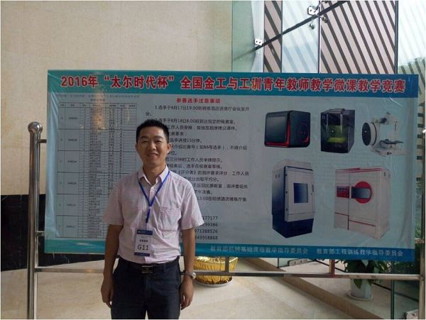 8月16日至19日,由教育部机械基础课程教学指导委员会和教育部工程训练教学指导委员会联合举办,江汉大学承办的2016年全国金工与工训青年教师微课教学竞赛在武汉举行,我校太阳成集团tyc33455cc陈国强老师作为湖南省选派的参赛选手,以小组预赛第一名晋级决赛,并在决赛中荣获一等奖。