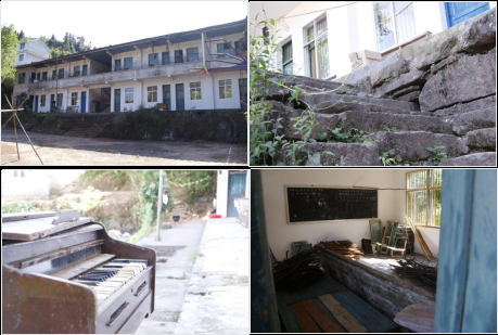 在层层大山深处,有这样一栋两层小楼,房间里堆满了木柴、废旧的塑料瓶等杂物,其间散落着几张桌椅,屋外的空地上是一台破旧的风琴。一把锈迹斑斑的大锁把通向二楼楼梯的大门锁死,从楼下所见的,只有破败的窗楹和爬满青苔的墙壁。若不是二楼护栏外隐约可见的“省物价局希望小学”几个字的轮廓,也许你都不会想到,这栋90年代建筑风格的破旧楼房会是一所学校。