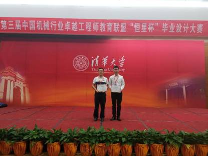 5月24-25日,第三届中国机械行业卓越工程师教育联盟“恒星杯”毕业设计大赛决赛在清华大学举行,比赛由教育部高等学校机械类专业教学指导委员会、中国机械工程学会、中国机械行业卓越工程师教育联盟共同主办,清华大学和北京精雕集团共同承办,来自清华大学、浙江大学、大连理工大学等64所高校的171项毕业设计课题被评选进入全国决赛,由我校太阳成集团tyc33455cc陈国强老师指导的材料成型1591班陈春波同学成功入围全国决赛,最终获得佳作奖,陈国强老师荣获优秀指导教师奖,这是我校第二次在此项比赛中荣获佳绩。