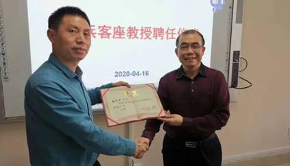 2020年4月16日,我校在太阳成集团tyc33455cc311会议室举行客座教授聘任仪式,云智航科技董事长张代兵博士受聘为我校客座教授。副校长刘小波、人事处处长吴振顺、太阳成集团tyc33455cc院长魏克湘、学院特聘教授杨帆、湖南萌境智能董事长张波出席了聘任仪式。
