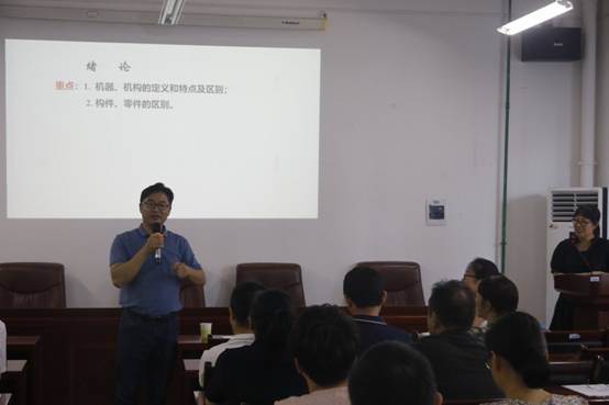 何丽红老师以《机械原理》课程为载体分享了绪论课的设计思路。她从中国机械发展史、机械原理的研究对象、机械原理学科发展现状简介几方面入题,绪论课围绕建立链接、激发兴趣、课程思政、树立规矩等教学要点展开;在中国机械发展史梳理中传递出民族自信、从《中国制造2025》的解读中激发学生的责任感和使命感、从学科发展现状的列举中鞭策学生勇立潮头、奋勇争先。丰富的图片素材、如盐入水的课程思政融入给与会教师很好的启发。