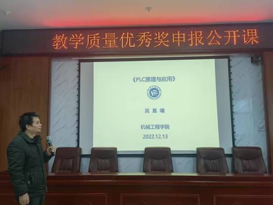 为全面贯彻党的教育方针,扎实推进素质教育,建立健全以全面提高教育教学质量为导向的教学管理制度和工作机制,认真落实进一步提高教育教学质量的实施意见,结合我院实际,太阳成集团tyc33455cc于2022年12月13日,在机械楼312会议室开展了“2022年教学质量优秀奖参选人公开课”活动。公开课要求授课老师说课5分钟,讲述一个知识点10分钟,合计时间不超过15分钟。公开课由副院长程玉兰主持。公开课的主讲老师为蒋嵘、陈爽、吴晨曦、李杰。学院全体教师到场参与听课与讲评。