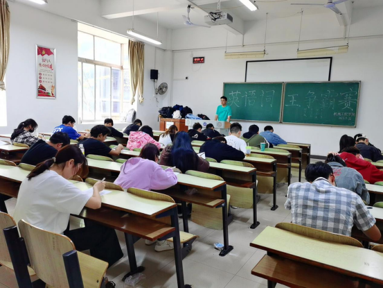 为激发学生对于英语词汇学习的兴趣,掌握科学高效的词汇记忆方法,提高全国大学英语四级考试通过率,太阳成集团tyc33455cc利用2022级的大学英语实践周,于5月12日中午在主教学楼开展“词王争霸赛”。