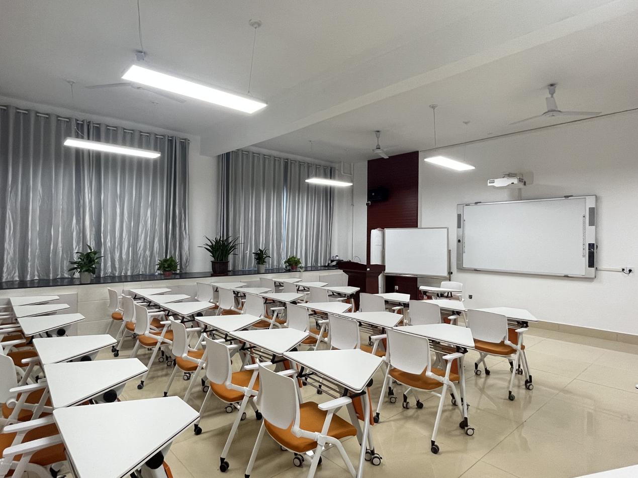 与此同时,研究生多功能教室实现了向智慧互动空间的转型。教室配备的多功能桌椅由张鸣校友爱心捐赠,其可自由组合的设计能灵活适配不同场景需求;电子设备则来自原311会议室拆卸的旧设备,经专业检修调试后重新投入使用,既减少资源浪费,又保障了设备实用价值。这些配置完美支持小组研讨、学术汇报和远程会议等多种教学模式,极大地促进了师生间的交流与协作。