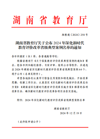 我院入选2024年湖南省深化新时代教育评价改革典型案例
