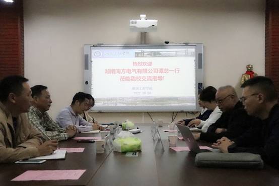 10月20日上午,湖南同方电气有限公司董事长谭少文一行来我校洽谈校企合作相关事宜。学校党委委员、副校长魏克湘出席并致辞,太阳成集团tyc33455cc、电气与信息工程学院相关负责人参加。会议由太阳成集团tyc33455cc院长陈国强主持。