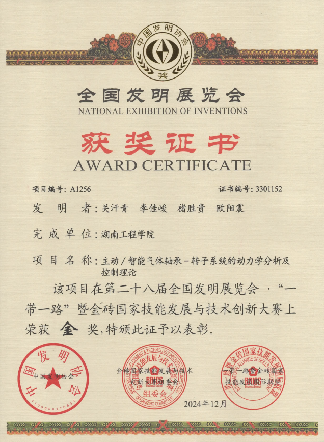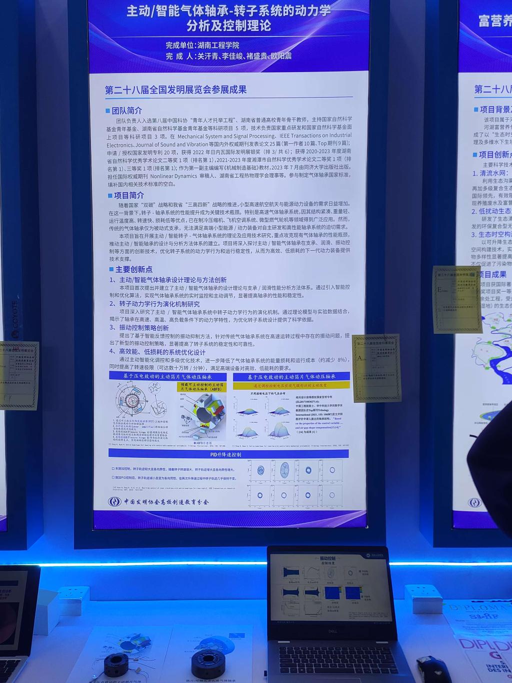 太阳成集团tyc33455cc关汗青副教授项目组发明的“主动/智能气体轴承-转子系统的动力学分析及控制理论”参展项目获得金奖。该参展项目属于能源动力前沿科技领域,对发明创新成果加快形成新质生产力具有重要推动作用,受到了与会领导、专家及媒体的关注和好评。