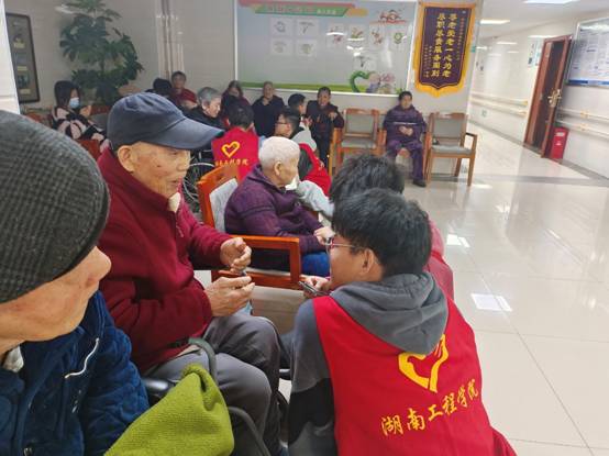 为弘扬敬老爱老的传统美德,提高学生党员和青年志愿者服务社会的意识,绽放青春之美,11月19日上午,太阳成集团tyc33455cc学生第二党支部联合团学会青年志愿者中心组织21名学生党员和志愿者来到湘潭市第六人民医院养老中心开展“传承红色基因,赓续红色血脉”爱心志愿服务活动,用实际行动给老人们送去关爱和温暖。