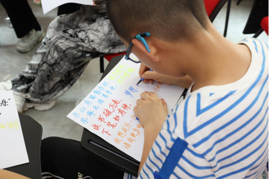 践行团成员通过调查问卷、实地走访、心理知识宣讲和团体辅导等形式展开调研。践行团成员向小学生发放《小学生学习动机调查问卷》,收集一手资料,梳理小学生的学习心理并提出针对性建议。在学习动机团辅活动现场,践行团成员通过小故事导入和心理科普知识,引发小学生对自己内外学习动机的思考和探索。最后,践行团成员带领活动现场的小学生设计学习信念卡,用彩笔在学习信念卡上写下自己的理想和激励自己学习的话语,鼓励小学生在学习疲惫、挫败、想要放弃时拿出信念卡为自己加油打气。“我好好学习是为了实现自己的理想”。“我要成为一名画家”。“我要成为会做机器人的科学家”,小学生以接龙的形式大声读出自己的学习信念卡内容。