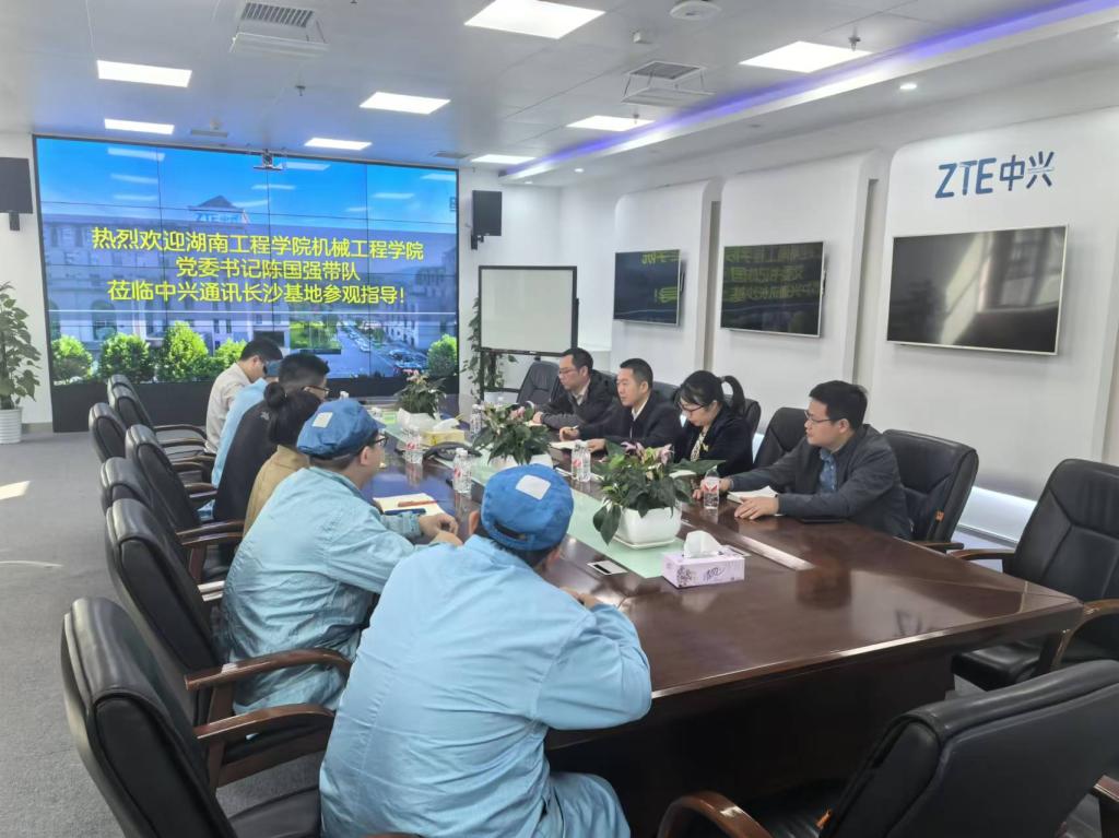 在长沙中兴智能技术有限公司,陈国强一行首先与公司总经理李新华、人力资源总监汤浩等进行了座谈交流并参观了公司生产现场,在座谈会上,李新华就中兴通讯长沙基地发展历程、业务布局及人才需求等方面进行了全面的介绍;公司人力资源总监汤浩介绍了企业人才需求、人才建设、产教融合建设思路等。陈国强向公司领导介绍了学校及机械学院的发展历史及办学特色、卓越工程师校企联合培养的实施历程及取得的成效。通过交流,公司充分肯定了我院的办学特色和人才培养成效,双方达成了开展卓越计划校企合作联合培养的强烈意愿。