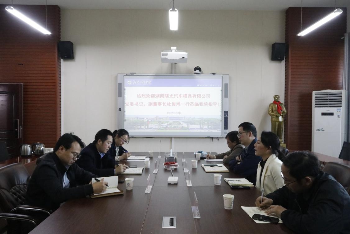4月2日,湖南晓光汽车模具有限公司党委书记、副董事长杜俊鸿率队赴我院交流推进校企合作,双方在机械楼311会议室展开座谈。学院党委书记陈国强、院长邹鸿翔、副院长程玉兰及相关教研室教师出席会议。