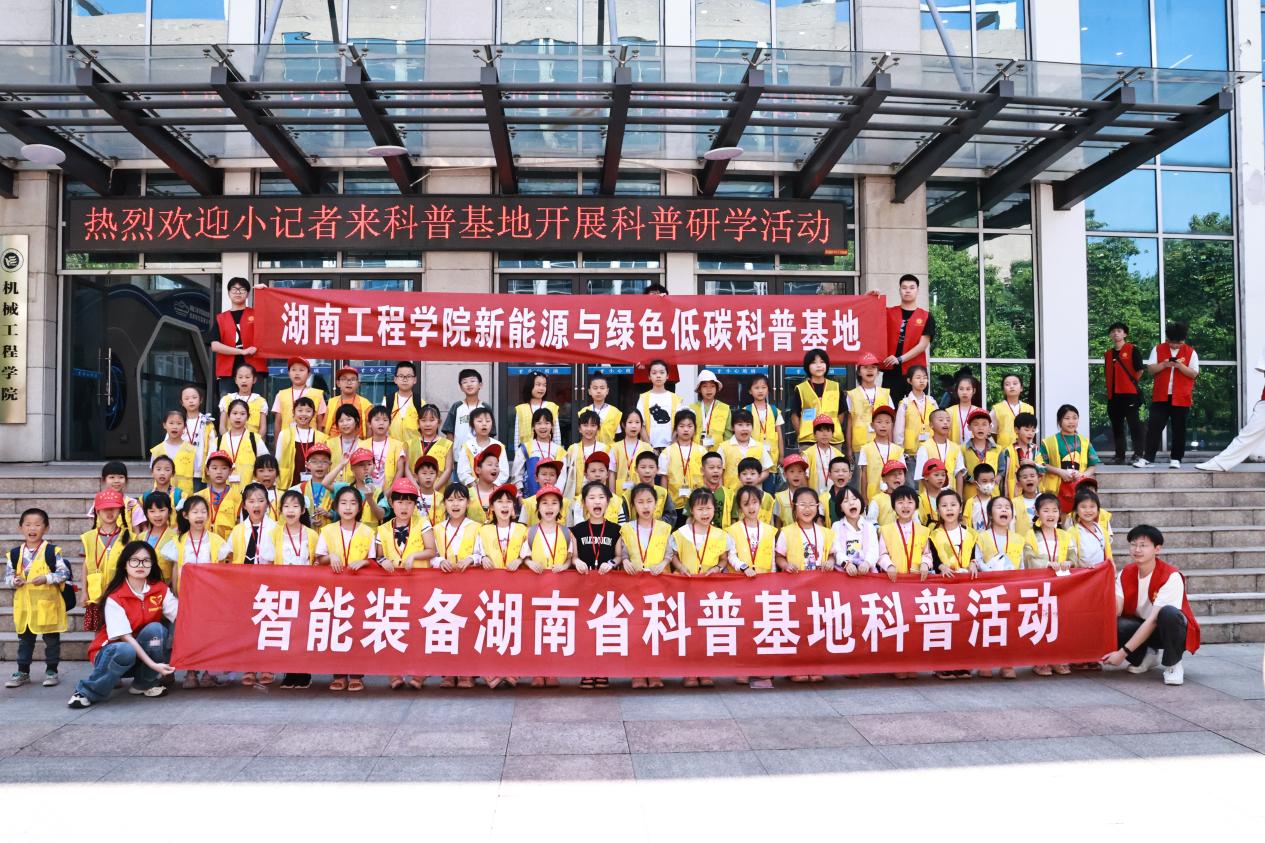 为激发青少年对智能装备与新能源领域的探索兴趣,5月10日-11日,智能装备湖南省科普基地与新能源与绿色低碳湘潭市科普基地联合湘潭日报社小记者俱乐部,举办"小记者进高校探索科技奥秘"科普研学活动。来自全市15所小学的400余名小记者走进基地,通过“实验室探秘+科普讲解+证书认证” 的立体体验,在心中种下科技启蒙的种子。